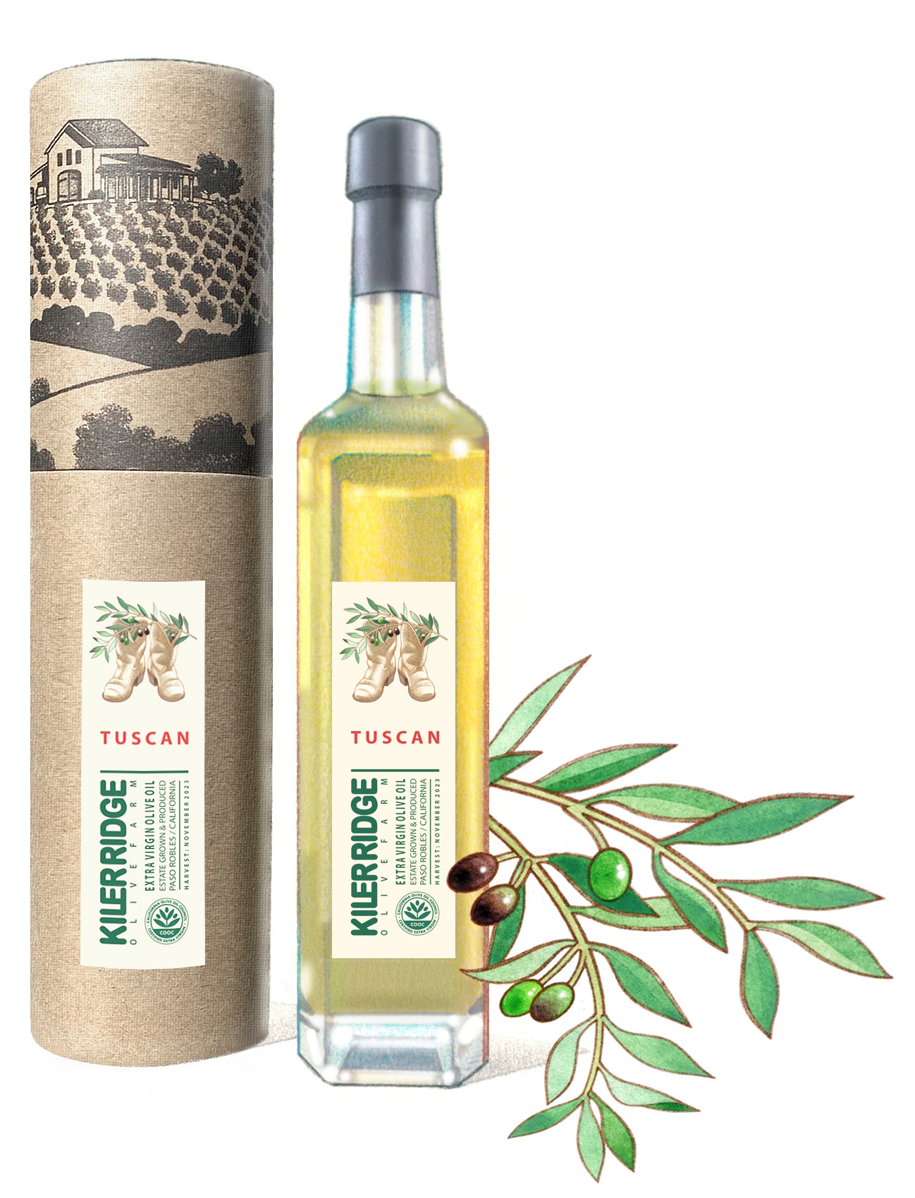 Fresh, small batch, California grown extra virgin olive oil (EVOO).